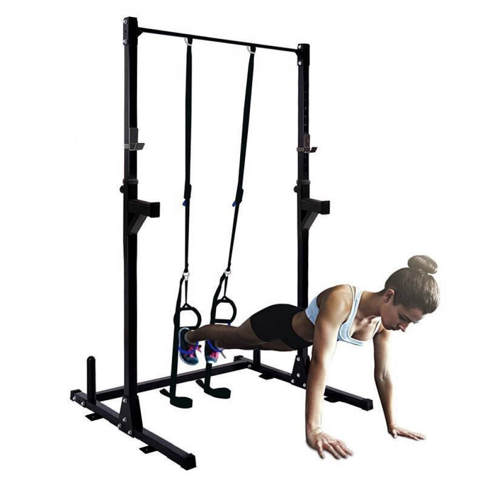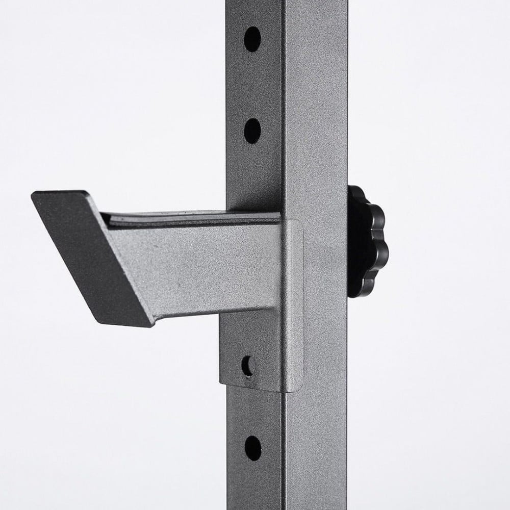 الخطافات جعلت من الجهاز متعدد الاستخدامات وذلك لأنك تستطيع ان تضع البار بأي ارتفاع تريد ولأنها توفر الأمان اللازم اثناء وبعد التمرين.​